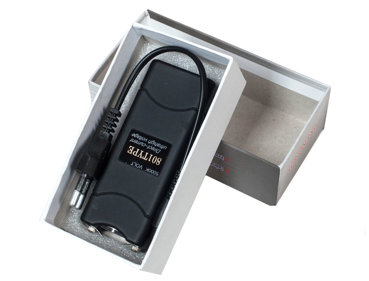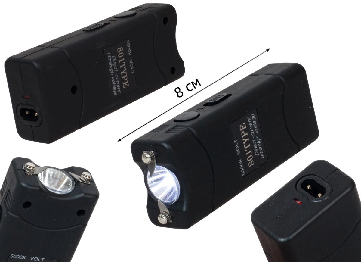 Оснащен фонариком и специальным предохранителем, который обезопасит пользователя от случайного нажатия.