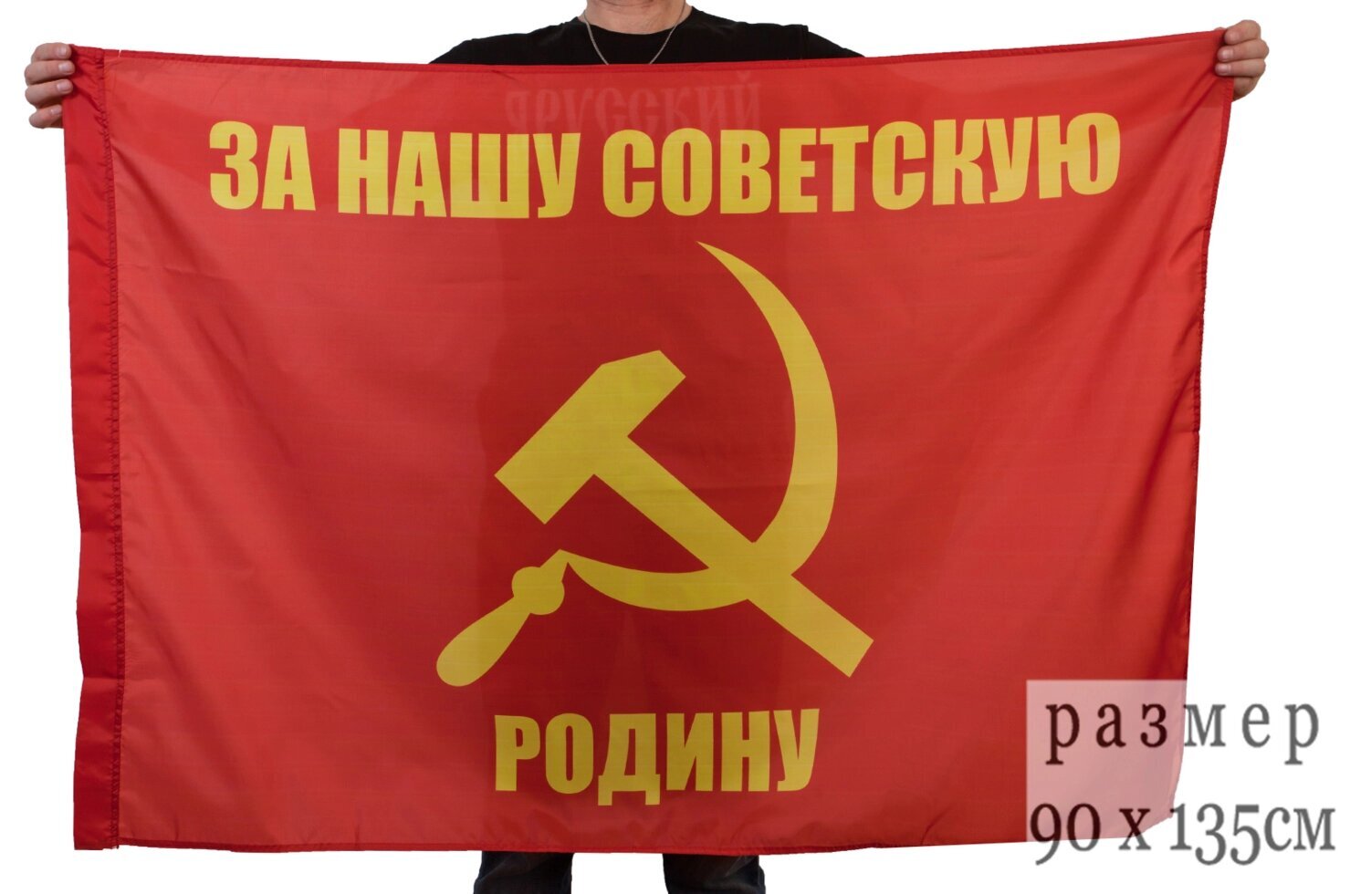 Флаг «За нашу Советскую Родину» представляет собой флаг Союза Советских Социалистических Республик «СССР», на который нанесён серп и молот и надпись «За нашу Советскую Родину».