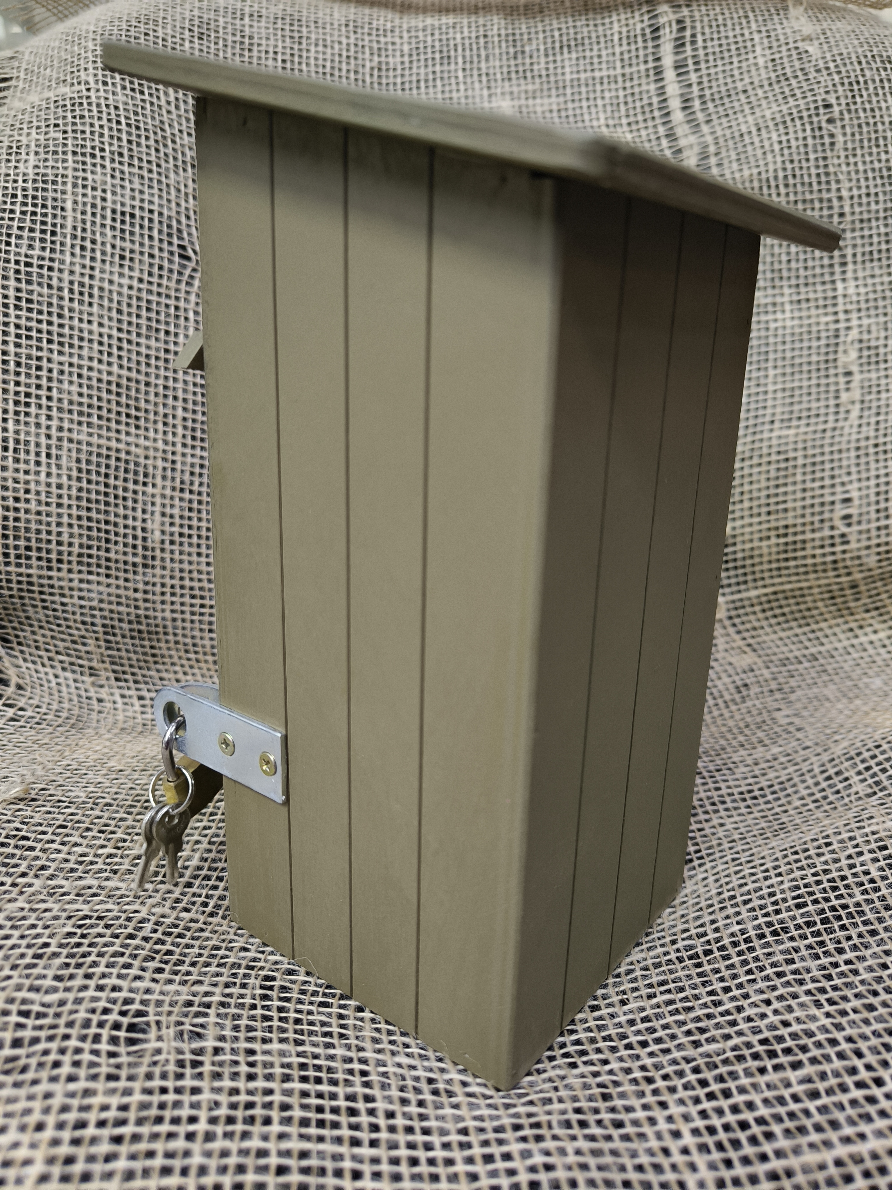 Откладывайте деньги легко и весело с копилкой-туалетом! Идеальный подарок для друзей и семьи, который поднимет настроение и научит экономить. Форма деревенского туалета из дерева вызывает улыбку и привлекает внимание, делая процесс накопления забавным и приятным.