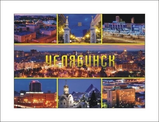 Магнит закатной Коллаж Челябинск 90х65 мм №0009 на металле.