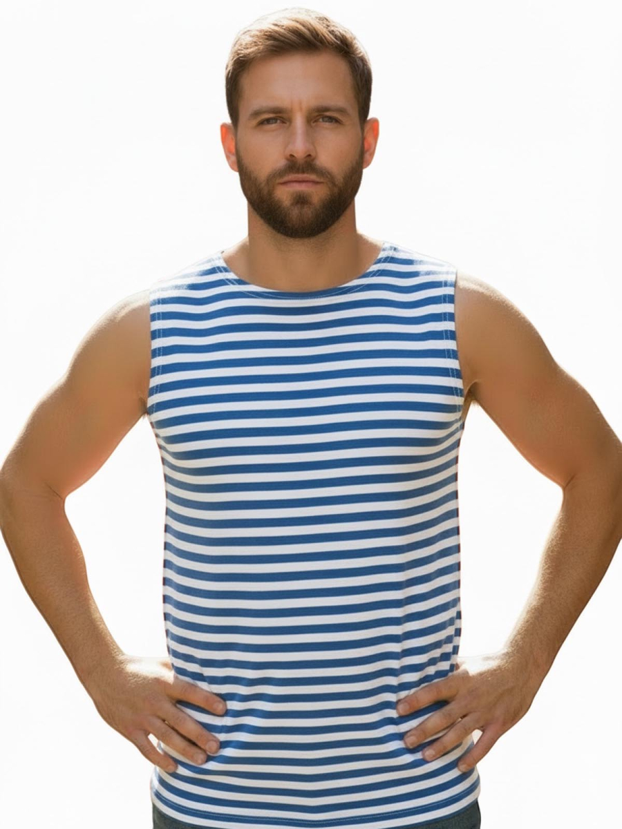 Майка-тельняшка - отличный вариант не только для военных! Прекрасно подходит для повседневного мужского гардероба, незаменима для жаркой погоды!. Стильная и удобная, по выгодной цене - спеши заказать! Отличное качество, приемлемая стоимость - заказывай, не пожалеешь!