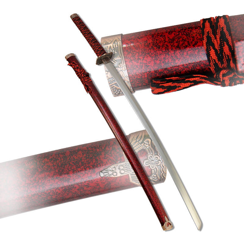 Погрузитесь в атмосферу древней Японии вместе с эксклюзивной катаной, украшенной элегантными ножнами из мрамора бордового оттенка. Настоящий шедевр кузнечного искусства станет изысканным подарком ценителю восточной культуры или оригинальным элементом интерьера.