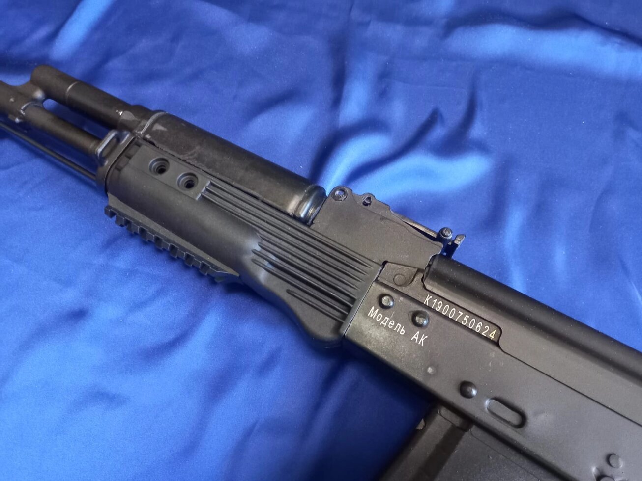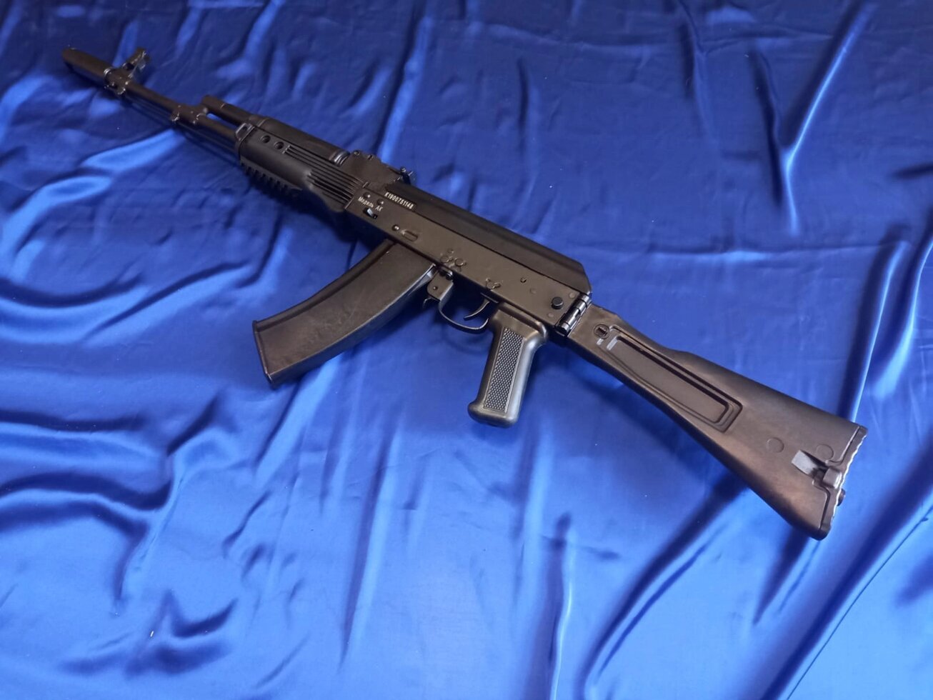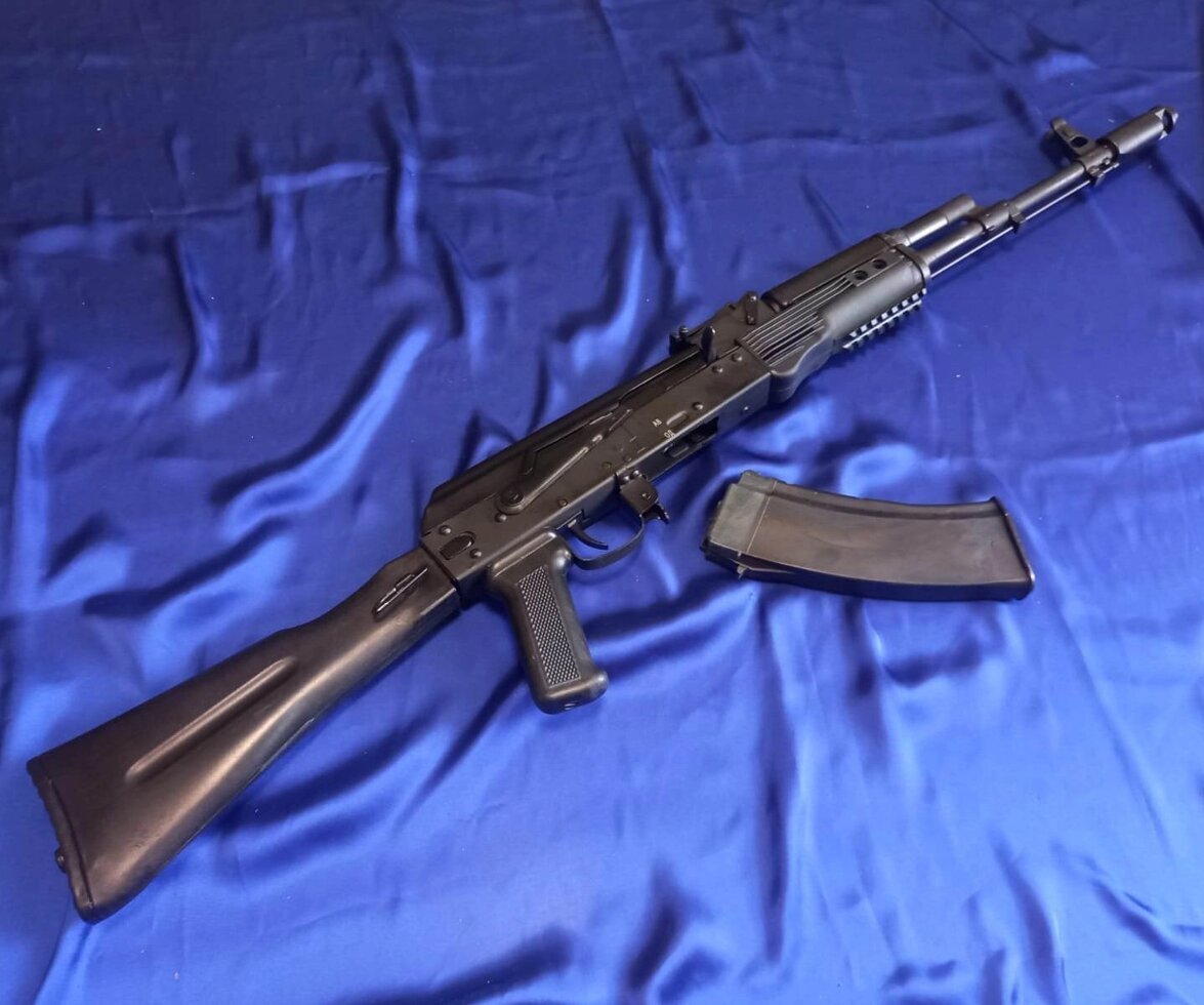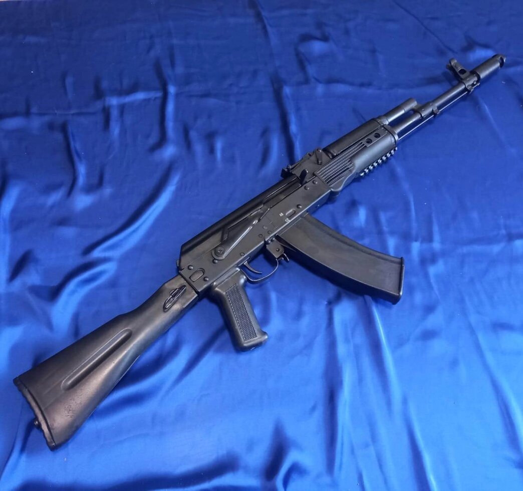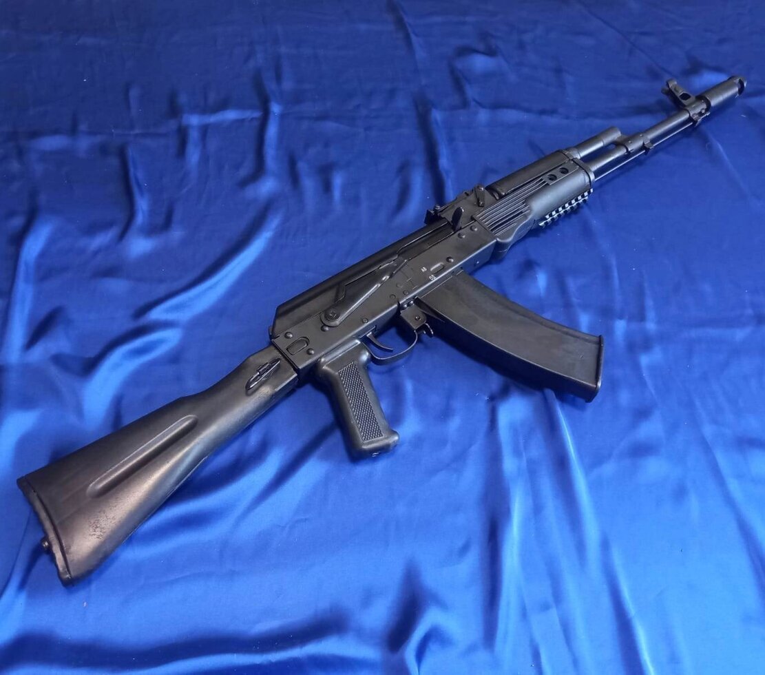 Макет автомата Калашникова АК-74М со складным рамным прикладом со стационарным прикладом, выполнен из металла и пластика. ММГ АК-74М является полной копией автомата Калашникова.