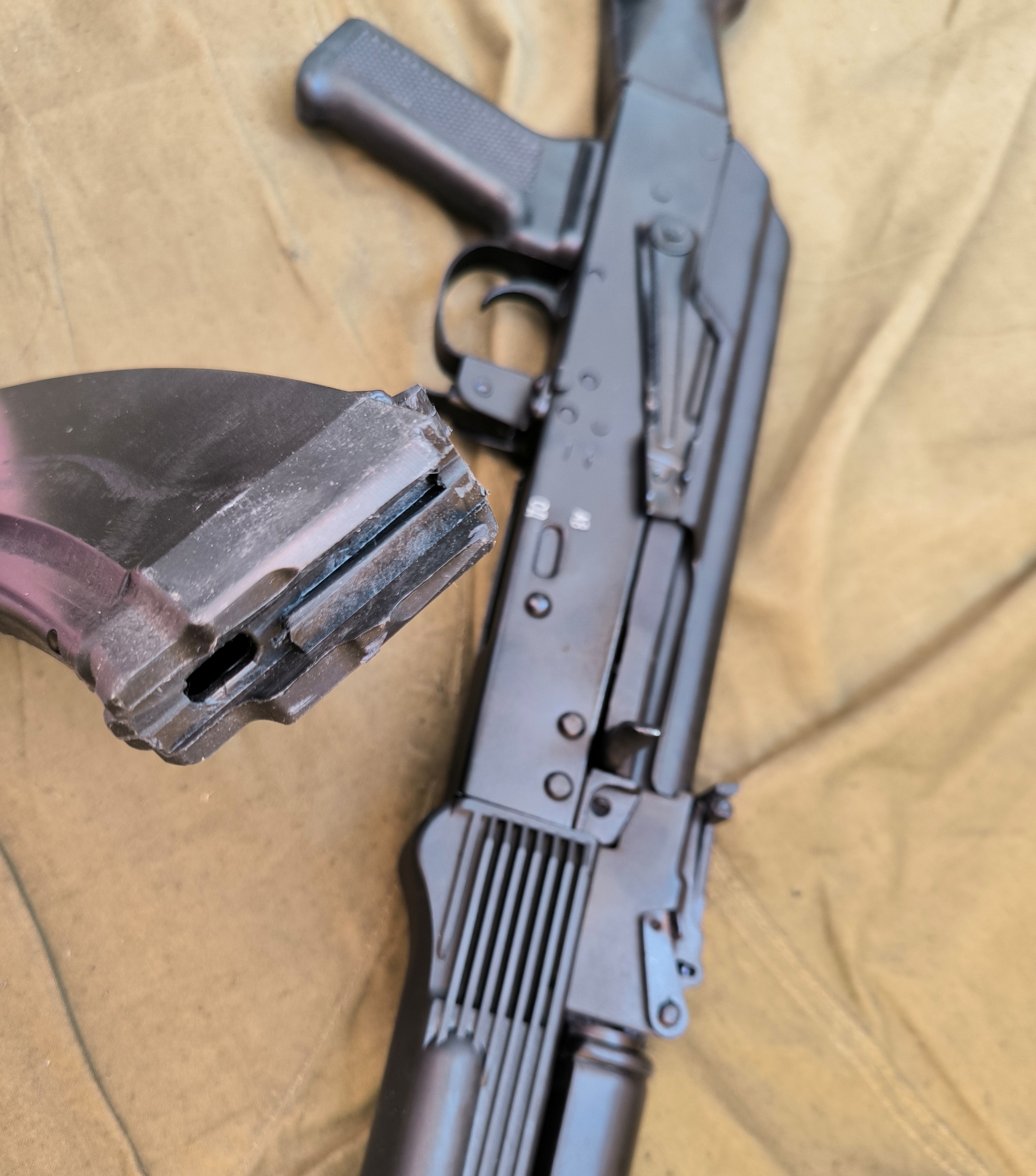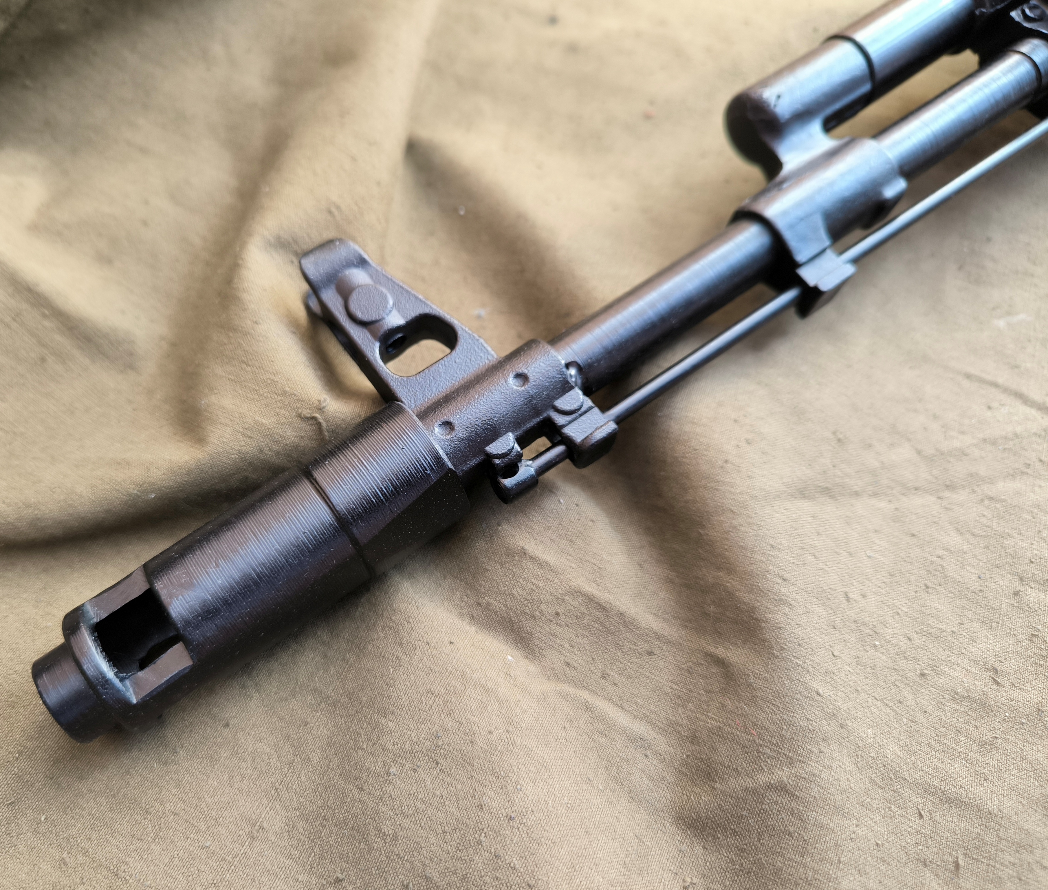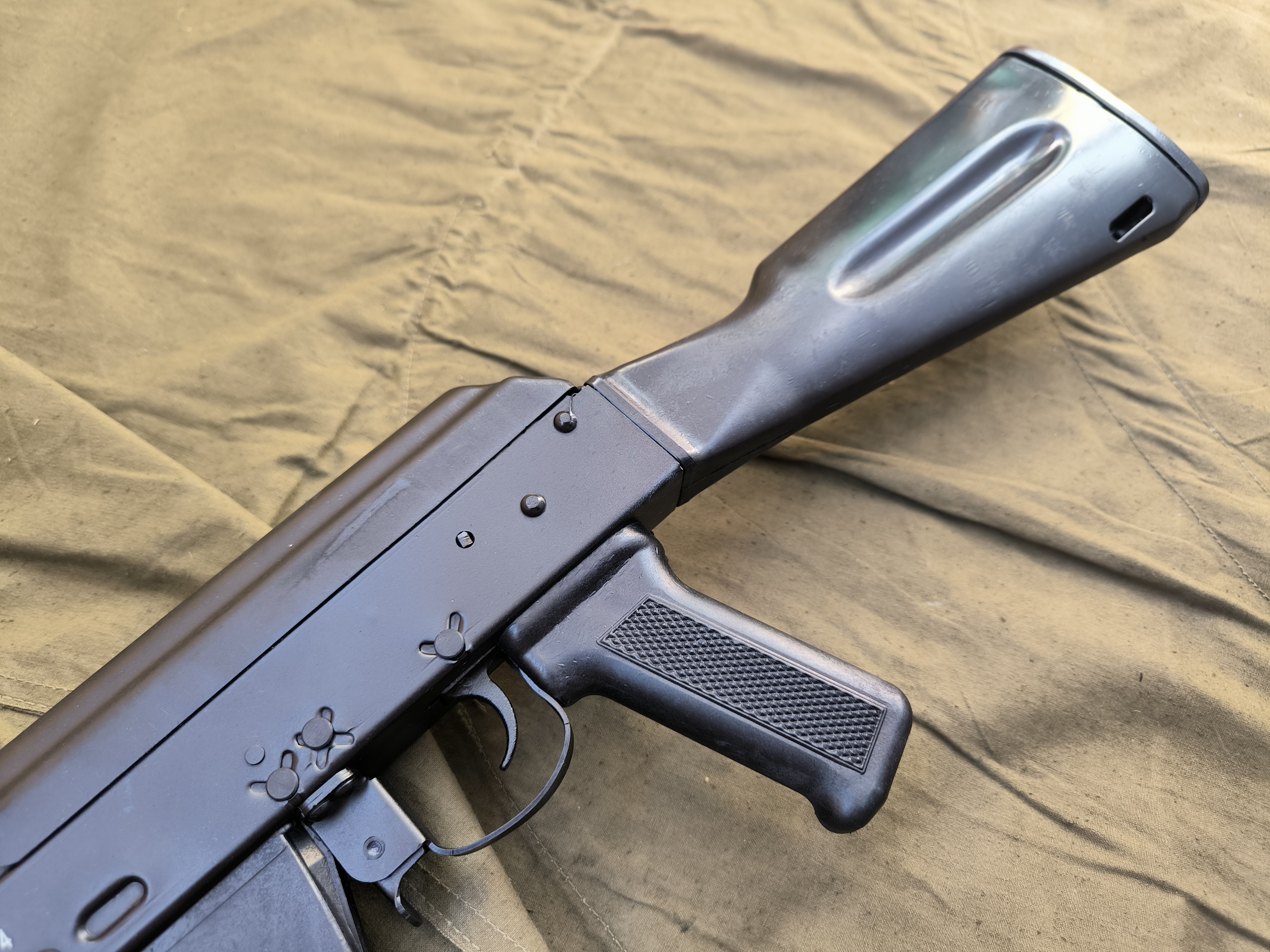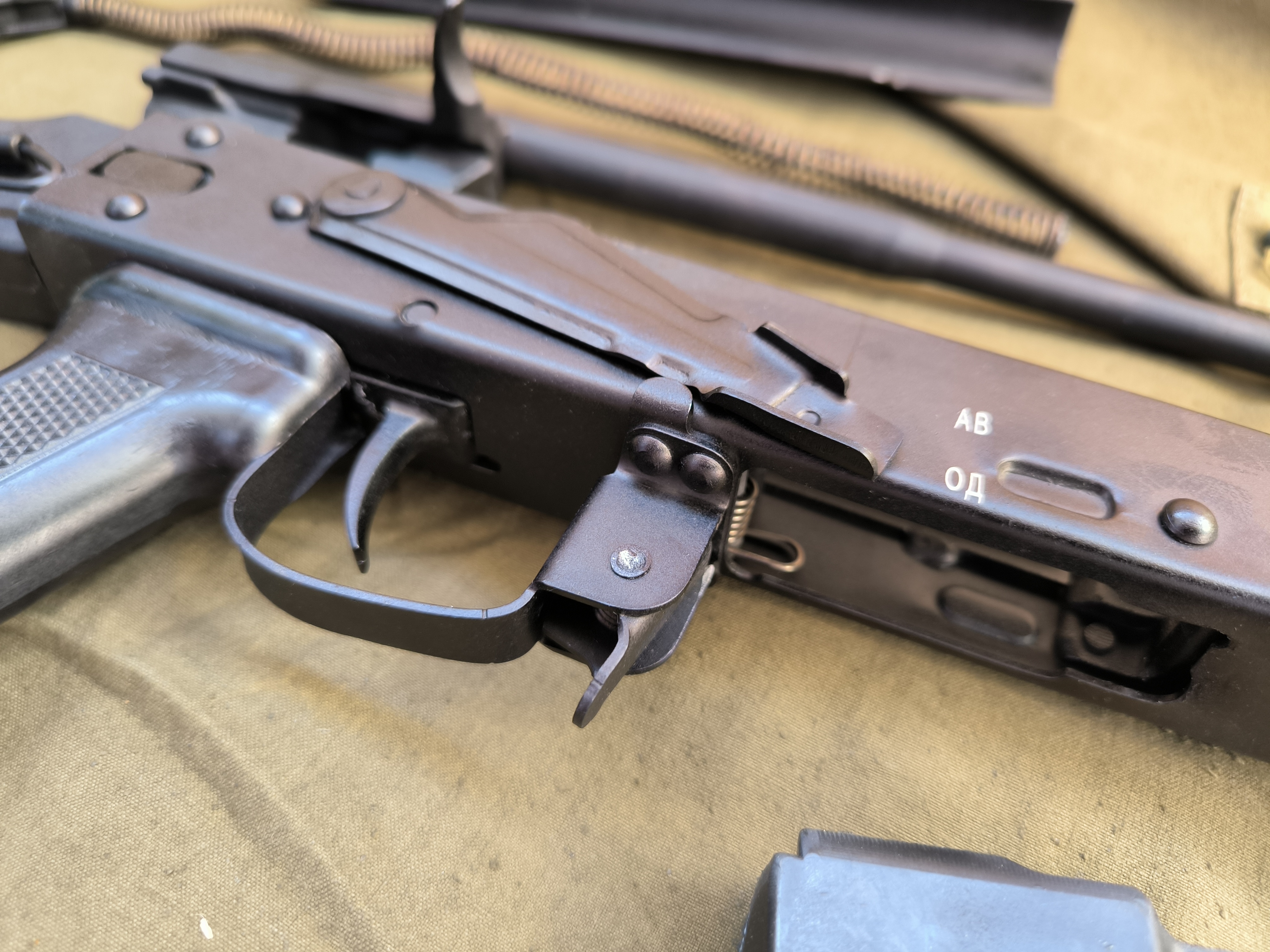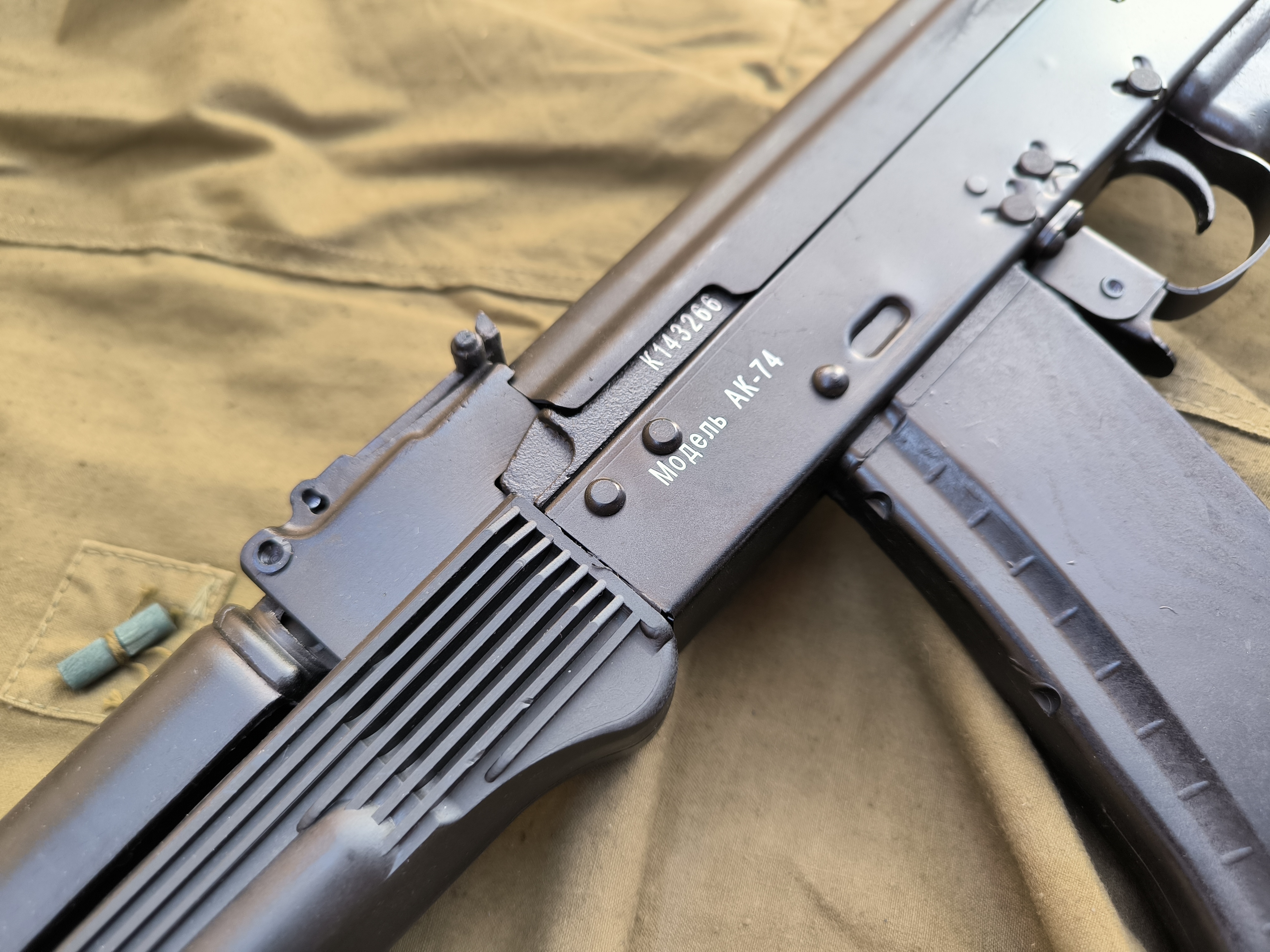 Материалы: сталь и пластик, аналогичные оригинальному АК‑74, — высокая износостойкость и долговечность.