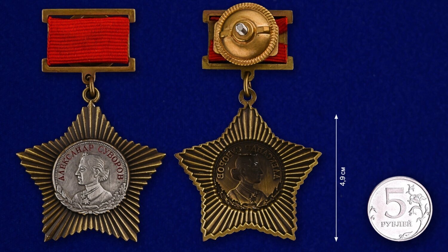 Орден Александра Суворова – один из самых известных и почитаемых знаков отличия СССР времен Великой Отечественной войны. Орден имени Суворова – первая советская награда, которой присвоено имя великого российского полководца. В тяжелый переломный период ВОВ у высшего военного командования и руководства страны возникла необходимость повысить патриотический настрой и веру в победу у советских офицеров. Всем, кто интересуется и почитает военную историю предлагаем точную копию ордена Суворова 2 степени.