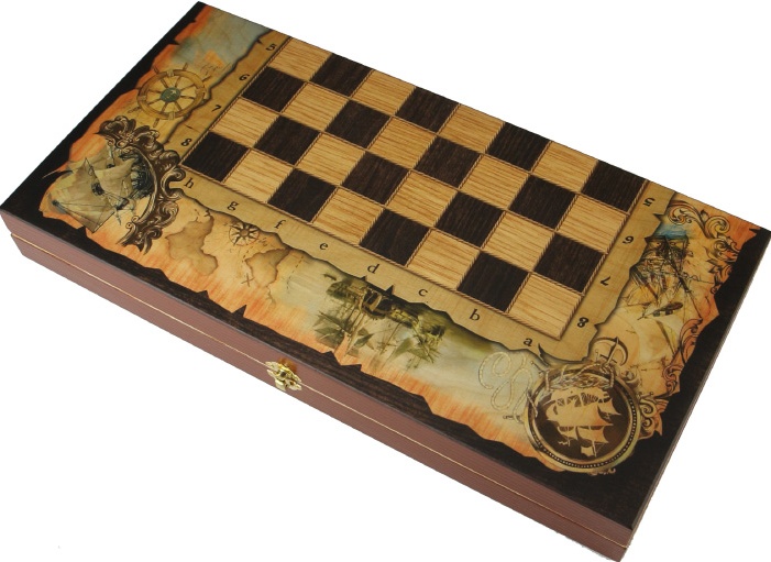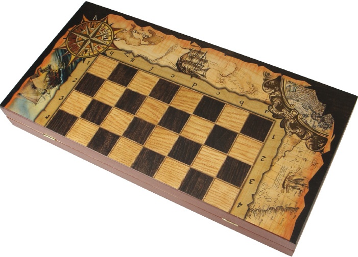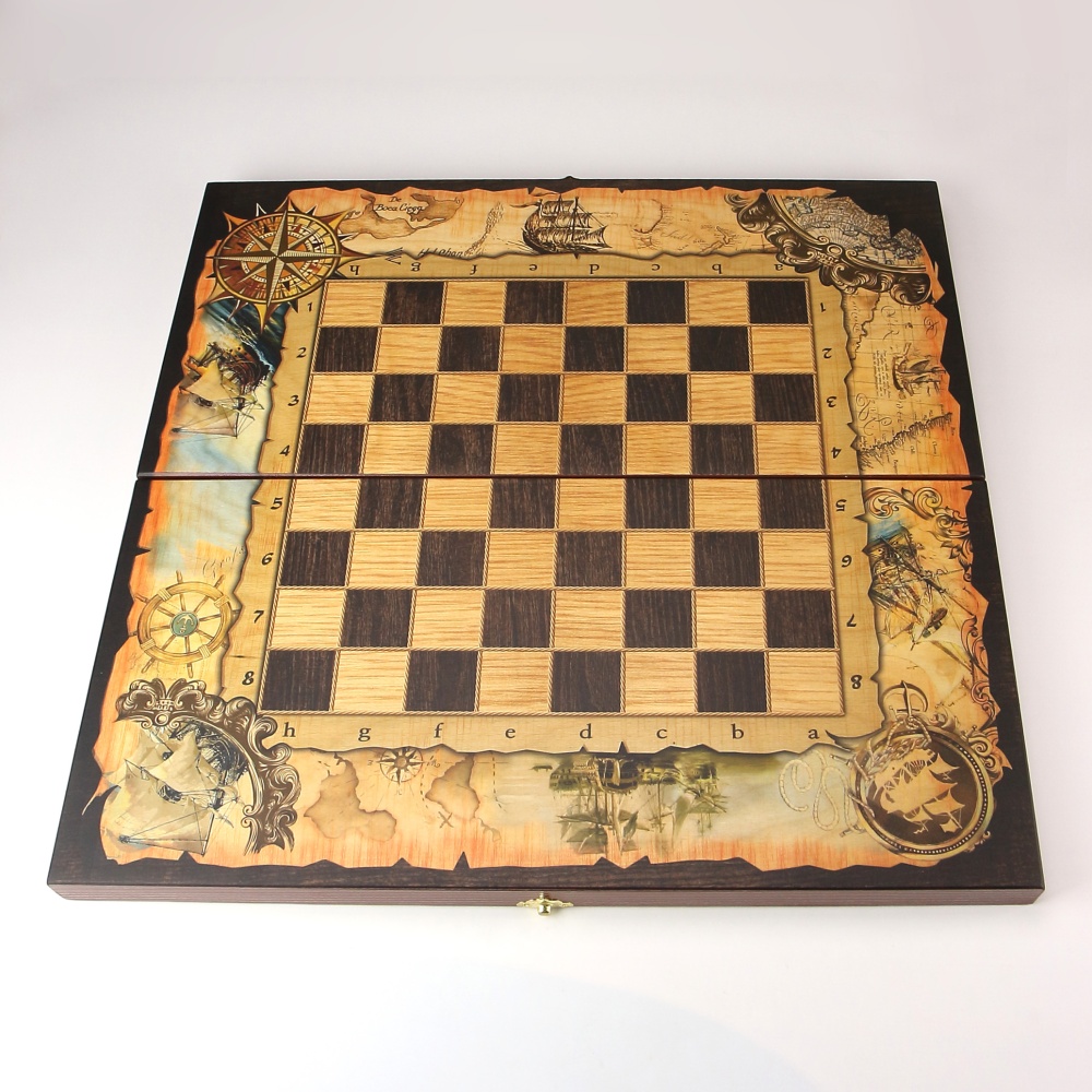 Набор 3 игры "Морские" (шахматы, нарды шашки, игральная складная доска 40 x 40см.)