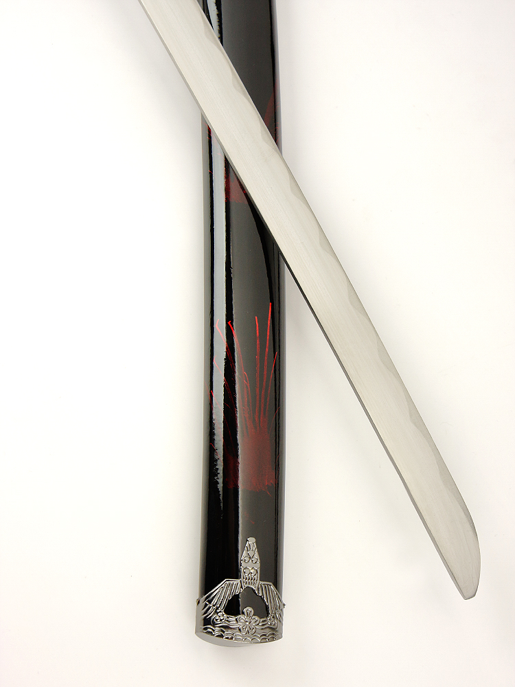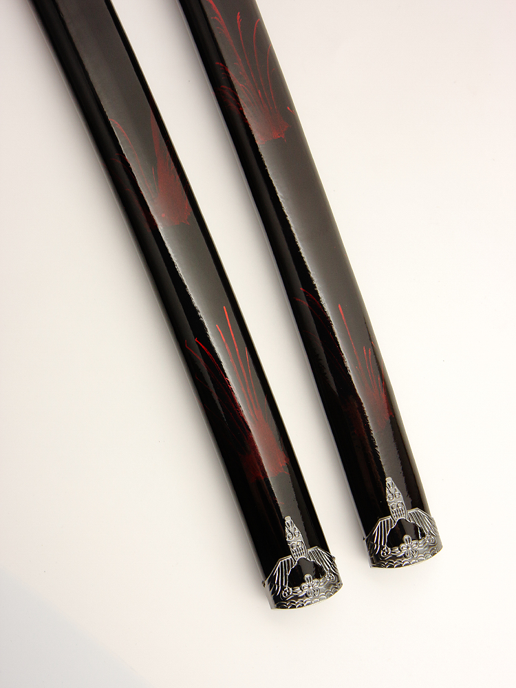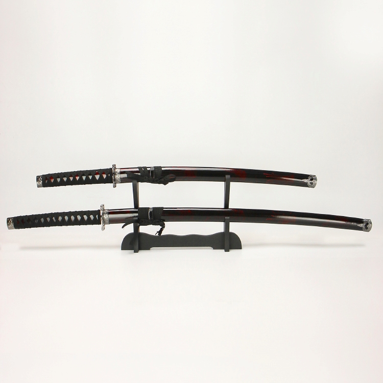 Набор самурайских мечей, 2 шт. Ножны бордово-черный мрамор, цуба серебро