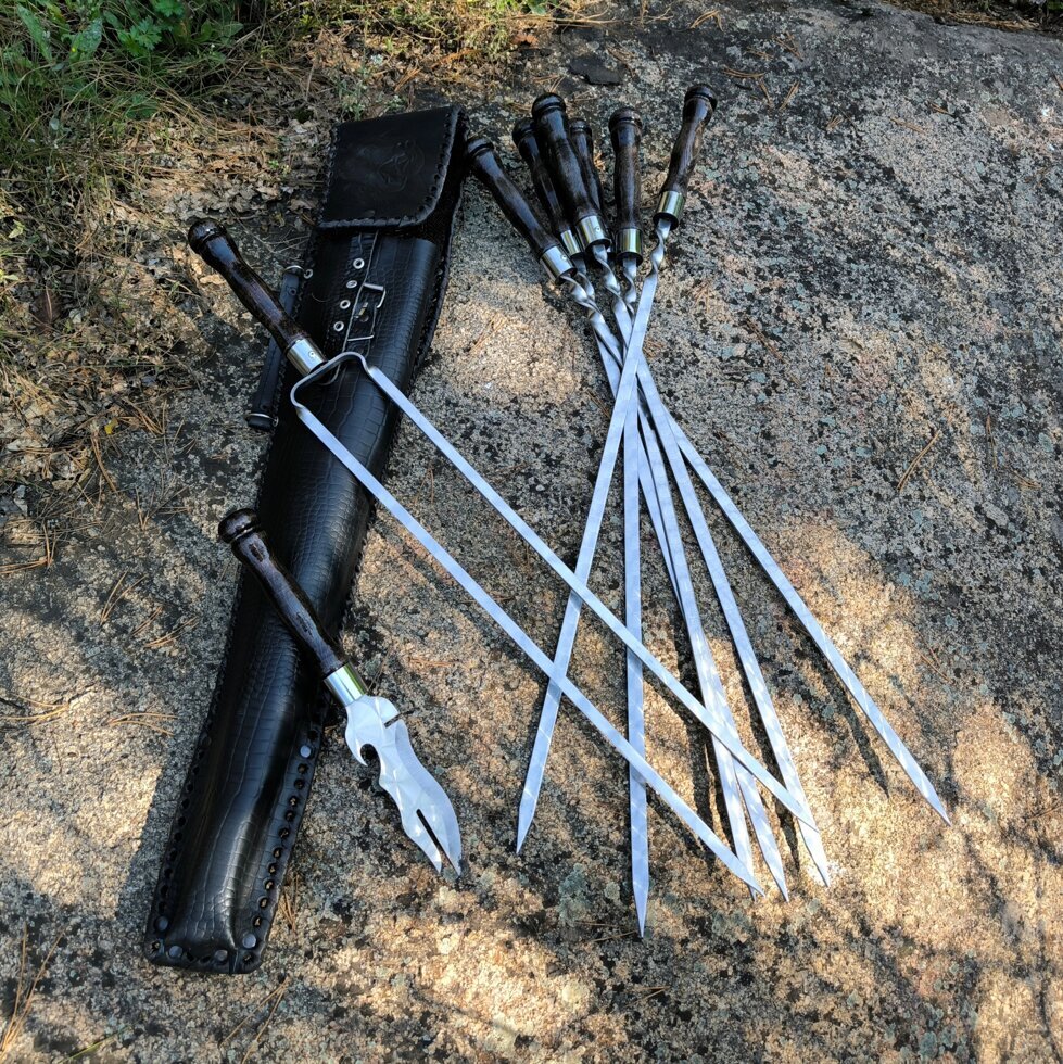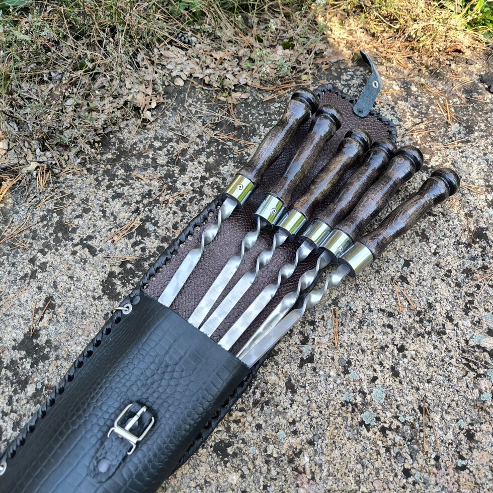 - 6 шампуров из нержавеющей стали и деревянной ручкой из бука