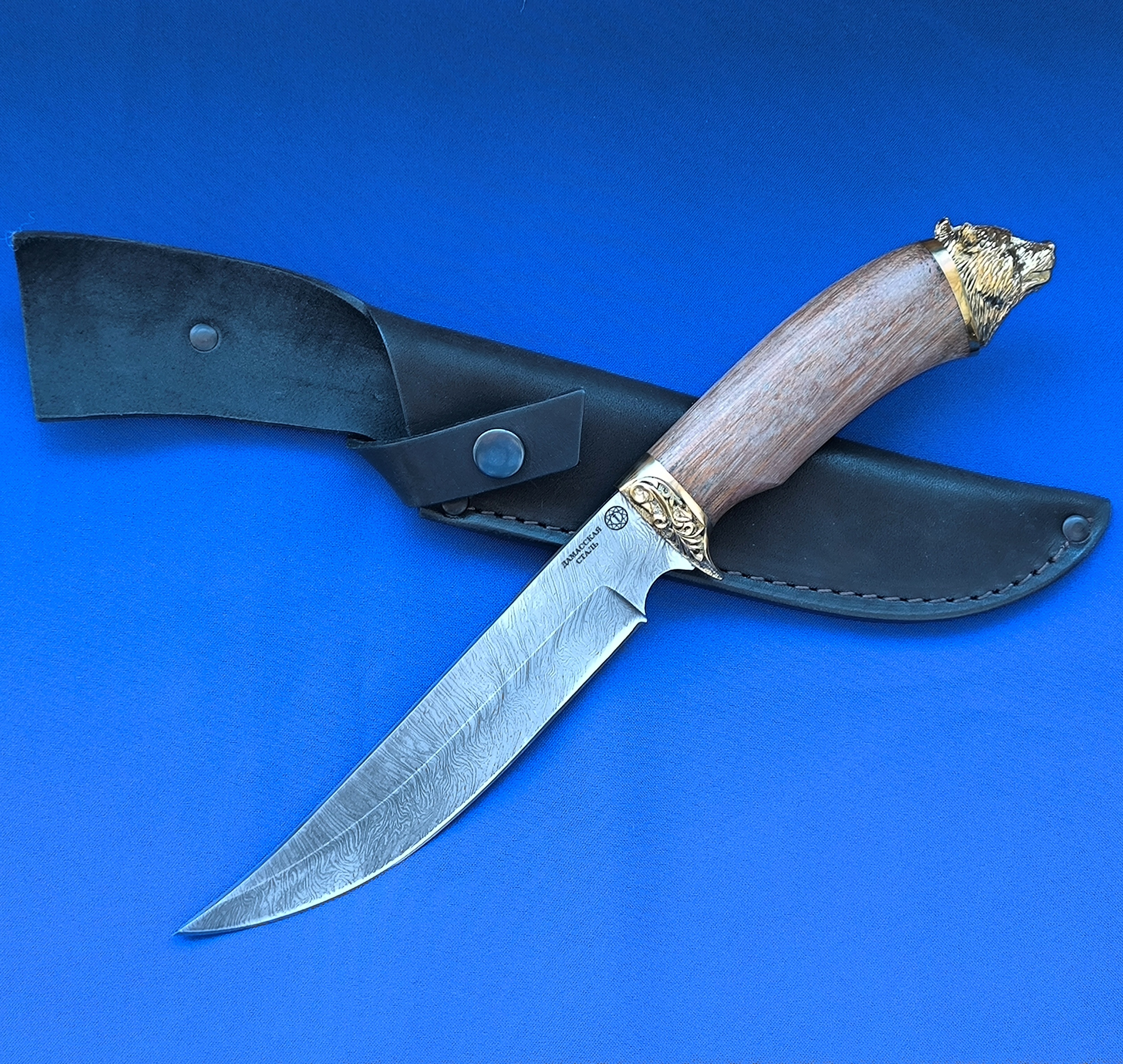 Нож Сокол из дамасской стали – это сочетание традиций русского ножеделия и современных технологий, изготовлен ножевыми мастера города Ворсма. Яркая деталь модели – рукоять из дерева венге и украшенная навершием из качественного латунного литья в виде дикого зверя, придающая ножу неповторимый стиль и удобство хвата. Острота лезвия позволит справиться даже с самой сложной задачей! Такой нож станет отличным подарком настоящему ценителю качественных вещей.