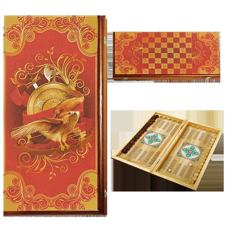 Набор 2 игры в деревянном коробе "Ястреб" (нарды, шашки, игральная складная доска 50х50 см.) средние SA-YA-M