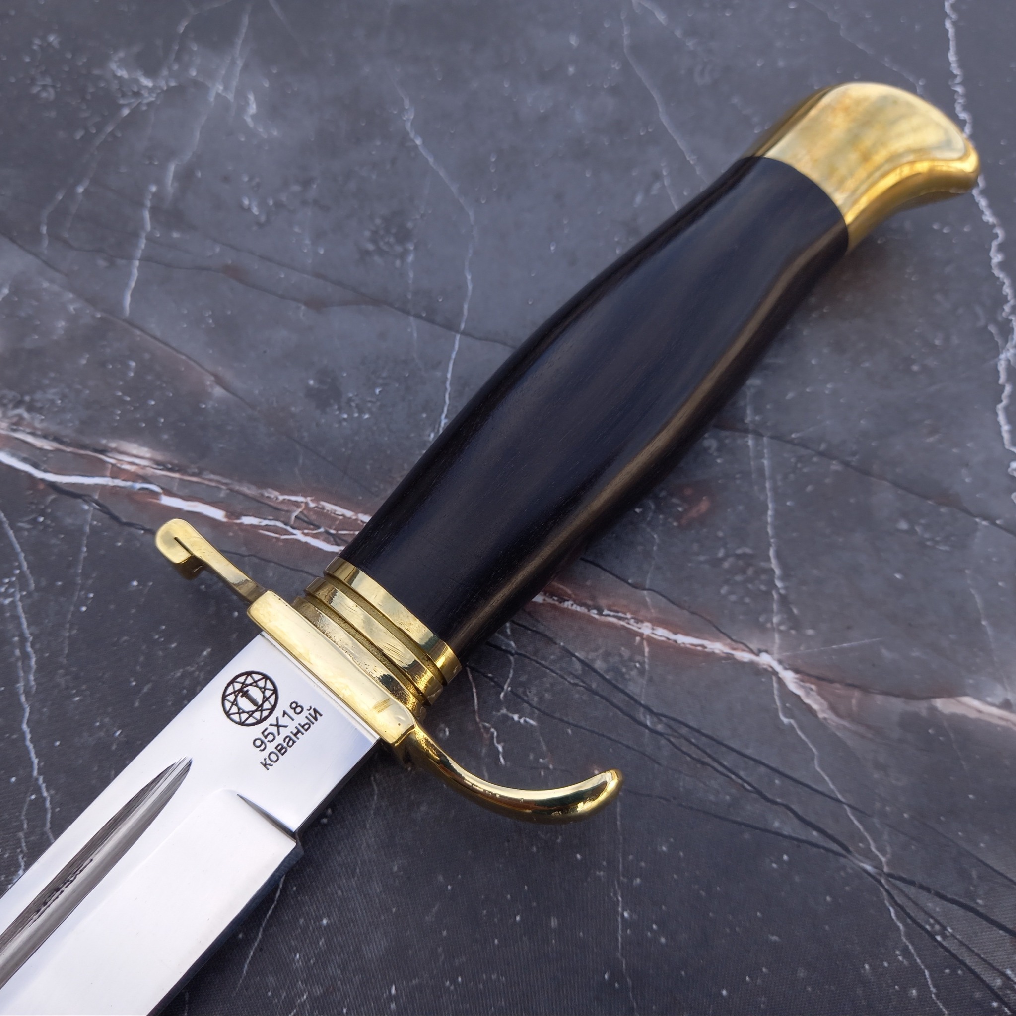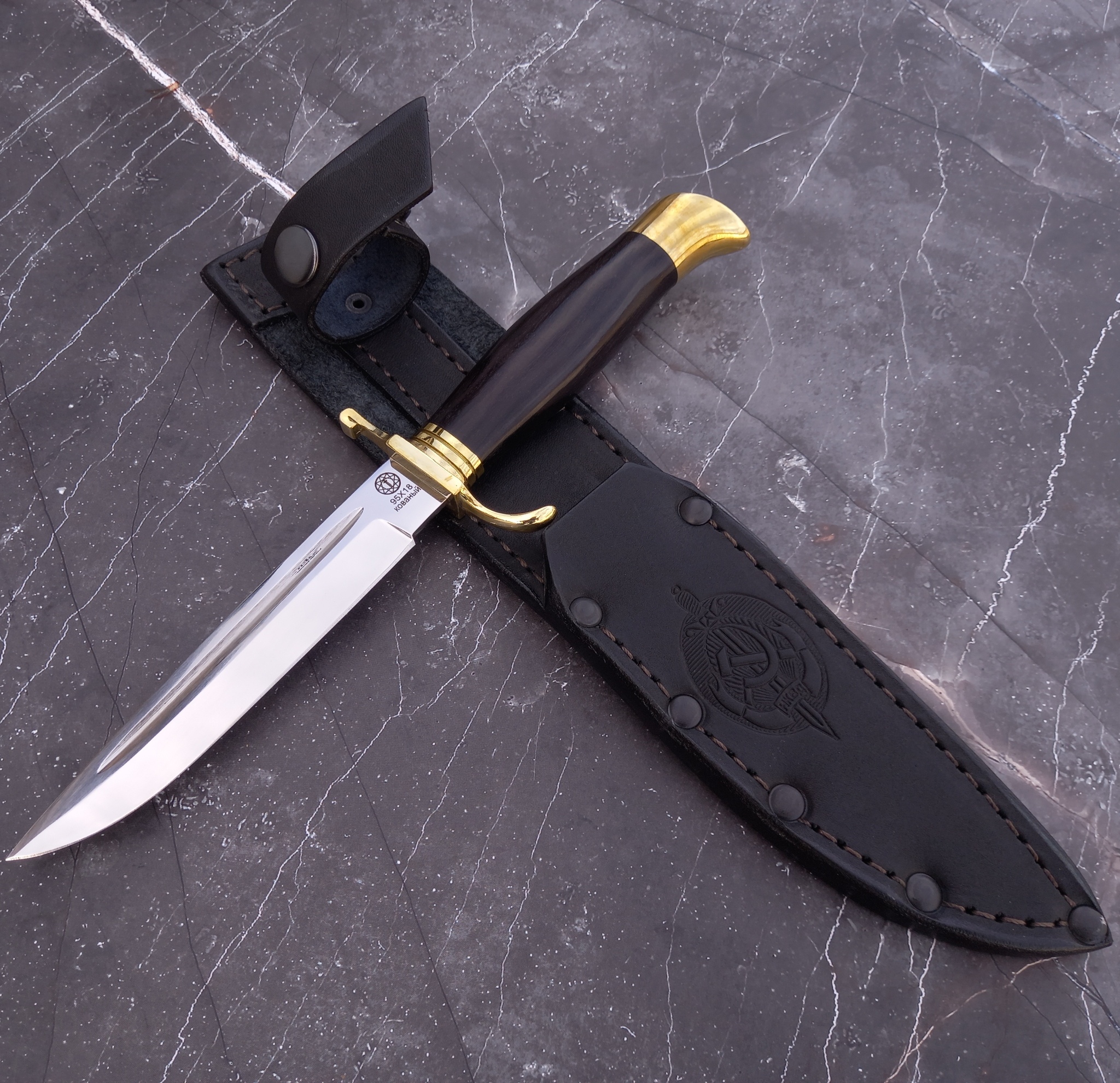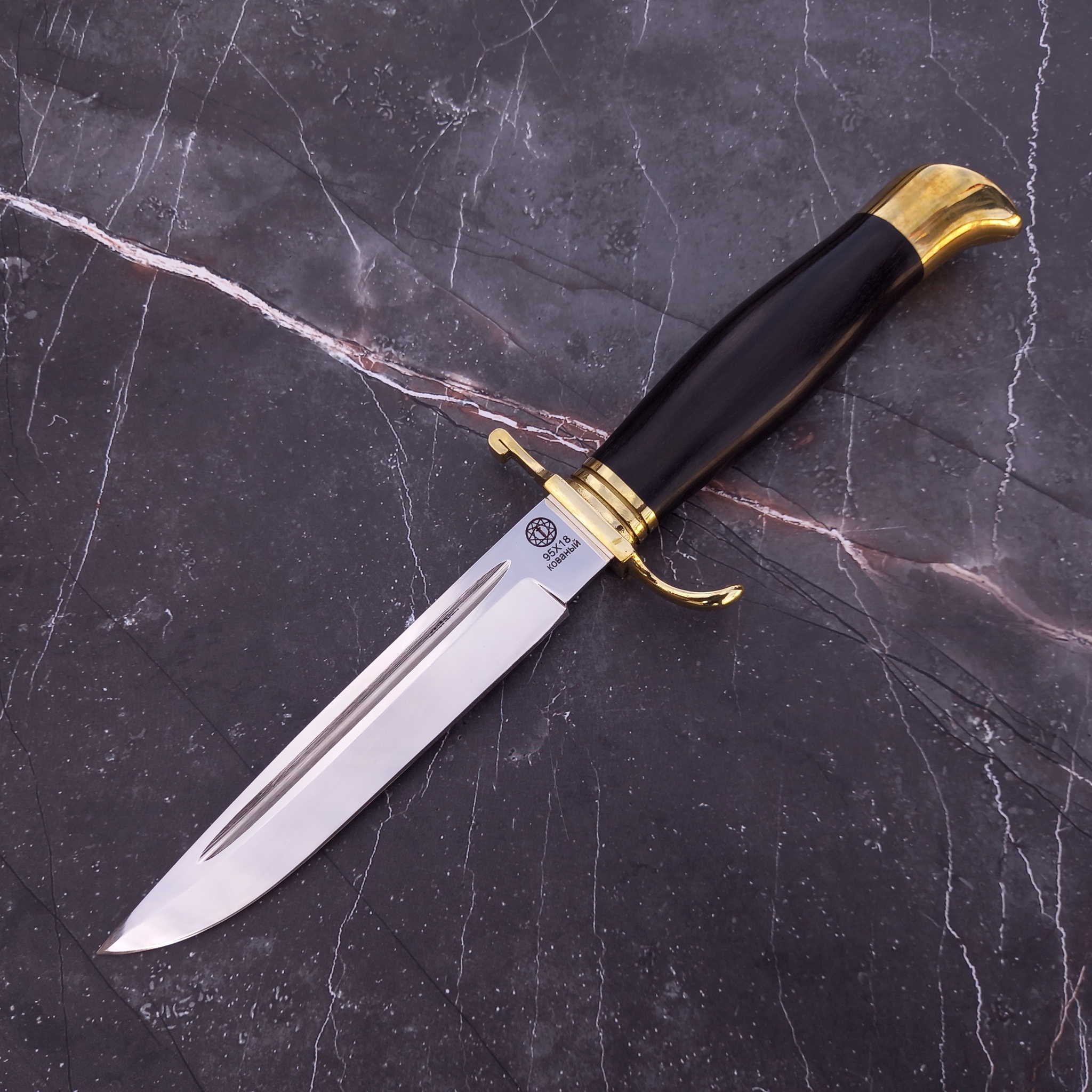 - Материал клинка: сталь 95Х18, обладающая высокими показателями твердости и устойчивости к коррозии.