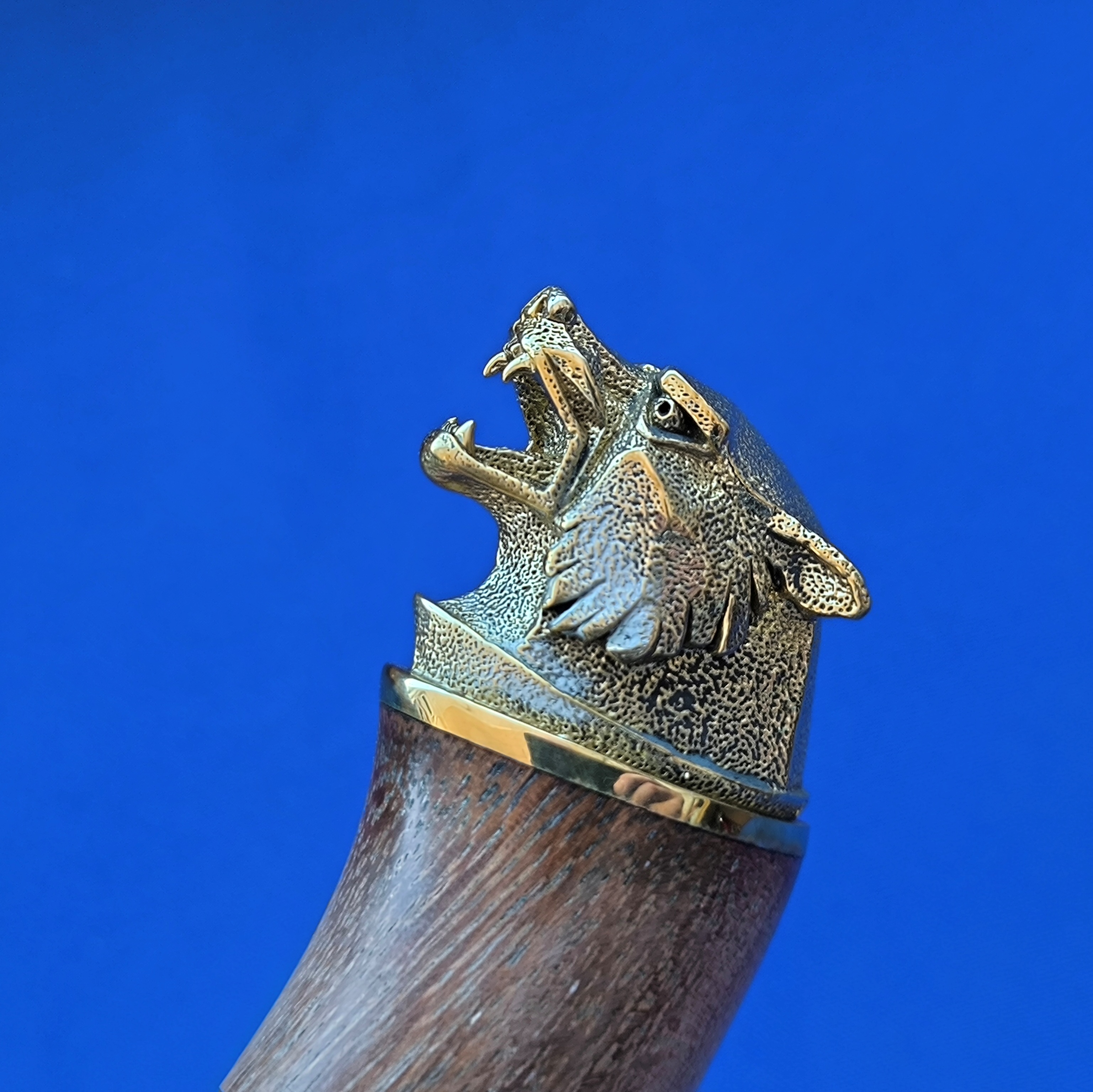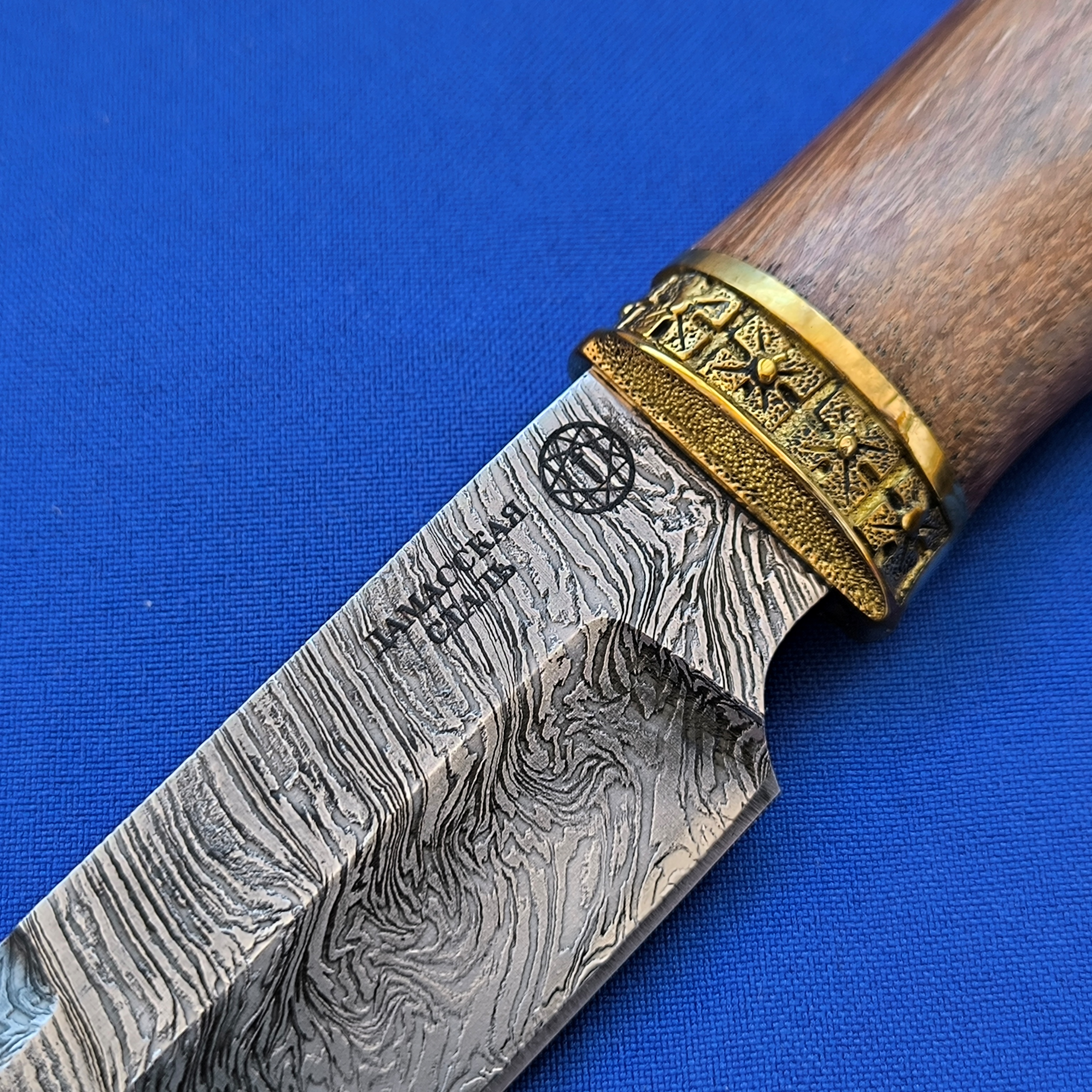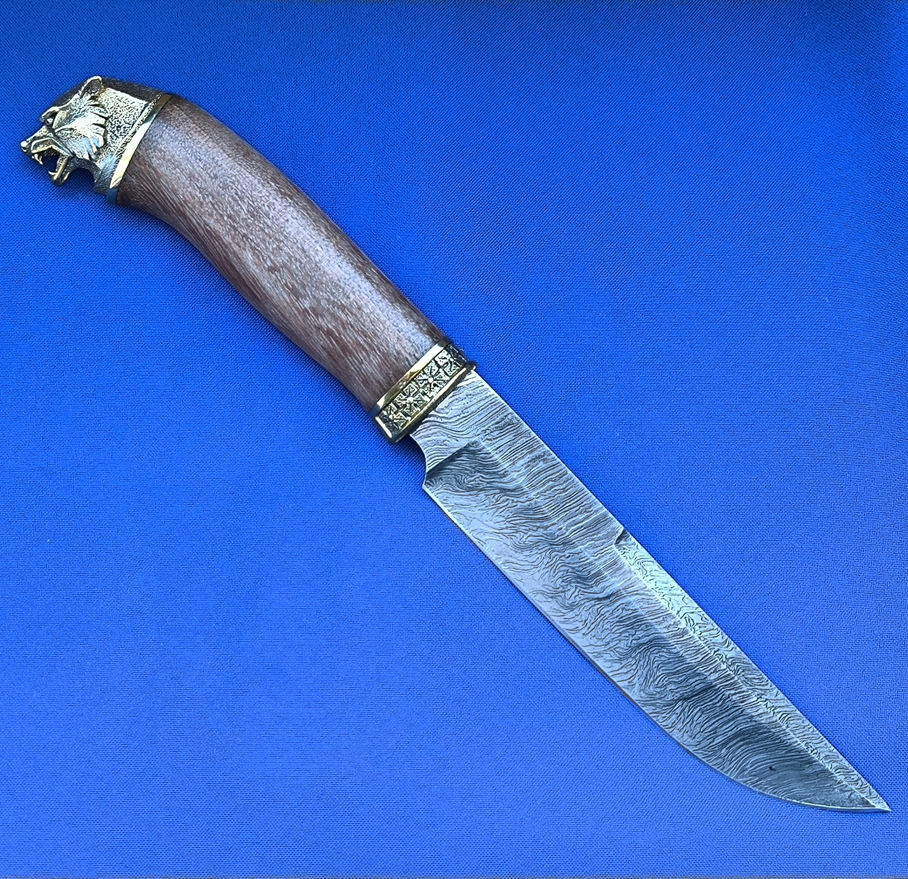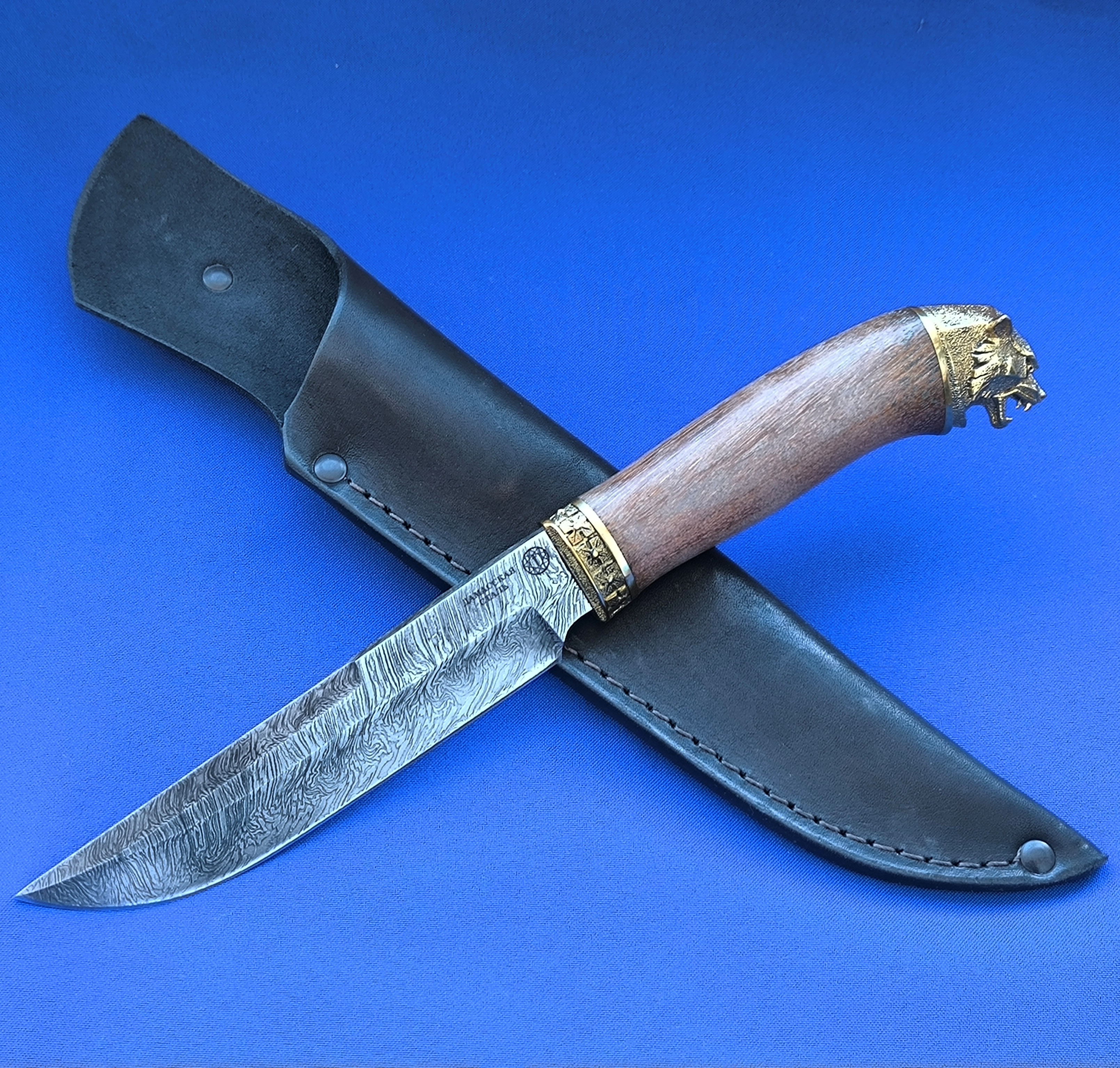 Нож Кадет из дамасской стали – это сочетание традиций русского ножеделия и современных технологий, изготовлен ножевыми мастера города Ворсма. Яркая деталь модели – рукоять из дерева венге и украшенная навершием из качественного латунного литья в виде дикого зверя, придающая ножу неповторимый стиль и удобство хвата. Острота лезвия позволит справиться даже с самой сложной задачей! Такой нож станет отличным подарком настоящему ценителю качественных вещей.