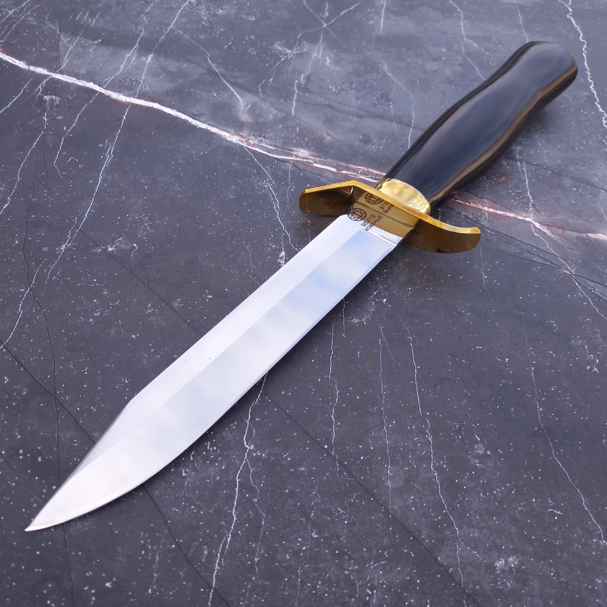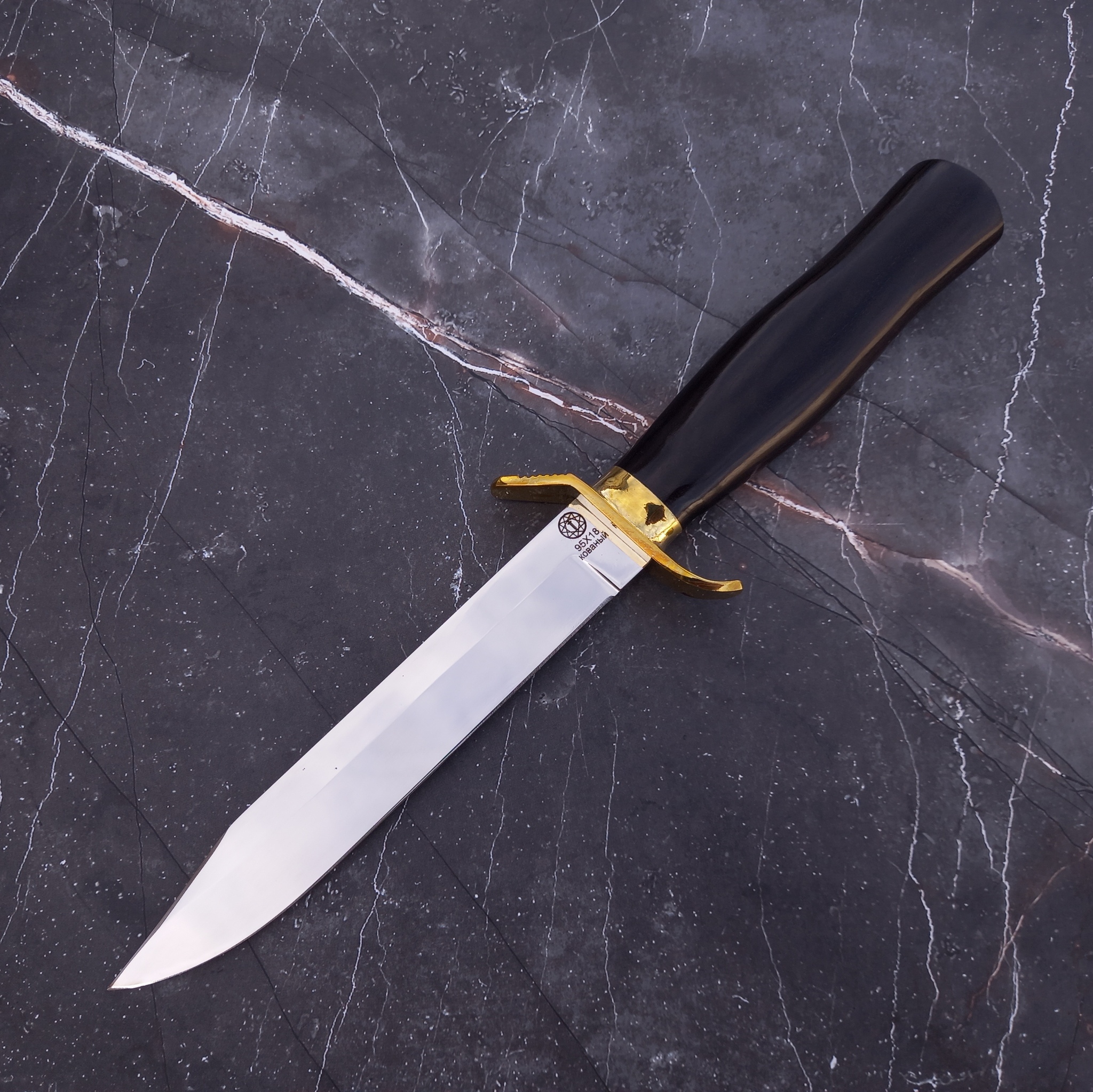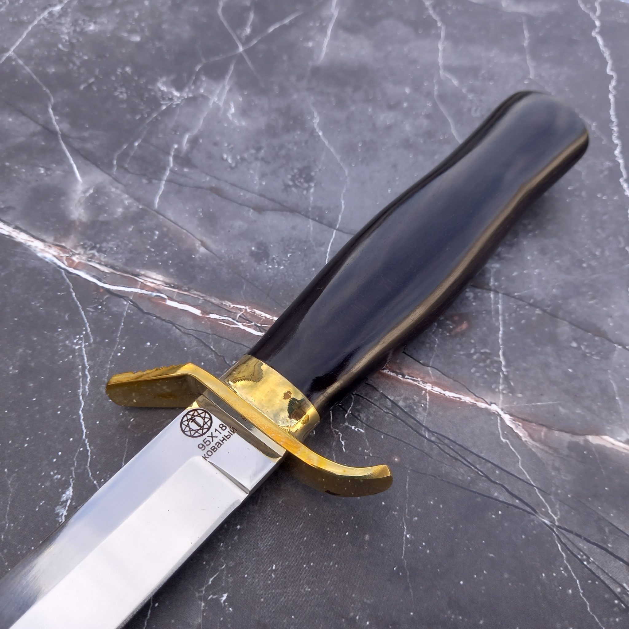Клинок выполнен из кованой нержавеющей стали 95х18 с зеркальной полировкой.
