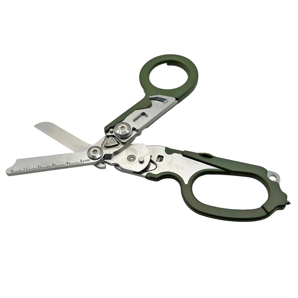 Мультитул Raptor обладает широким функционалом при малых габаритам и сочетает в себе сразу 6 инструментов. Основным инструментом являются медицинские ножницы из нержавеющей стали 420HC. Так же ножницы оснащены дополнительными функциями, что позволит выполнять широкий спектр задач при оказании помощи людям – стропорез, щипцы для резки колец, линейка, гаечный ключ для кислородного баллона, стеклорез с лезвием из твердого сплава.