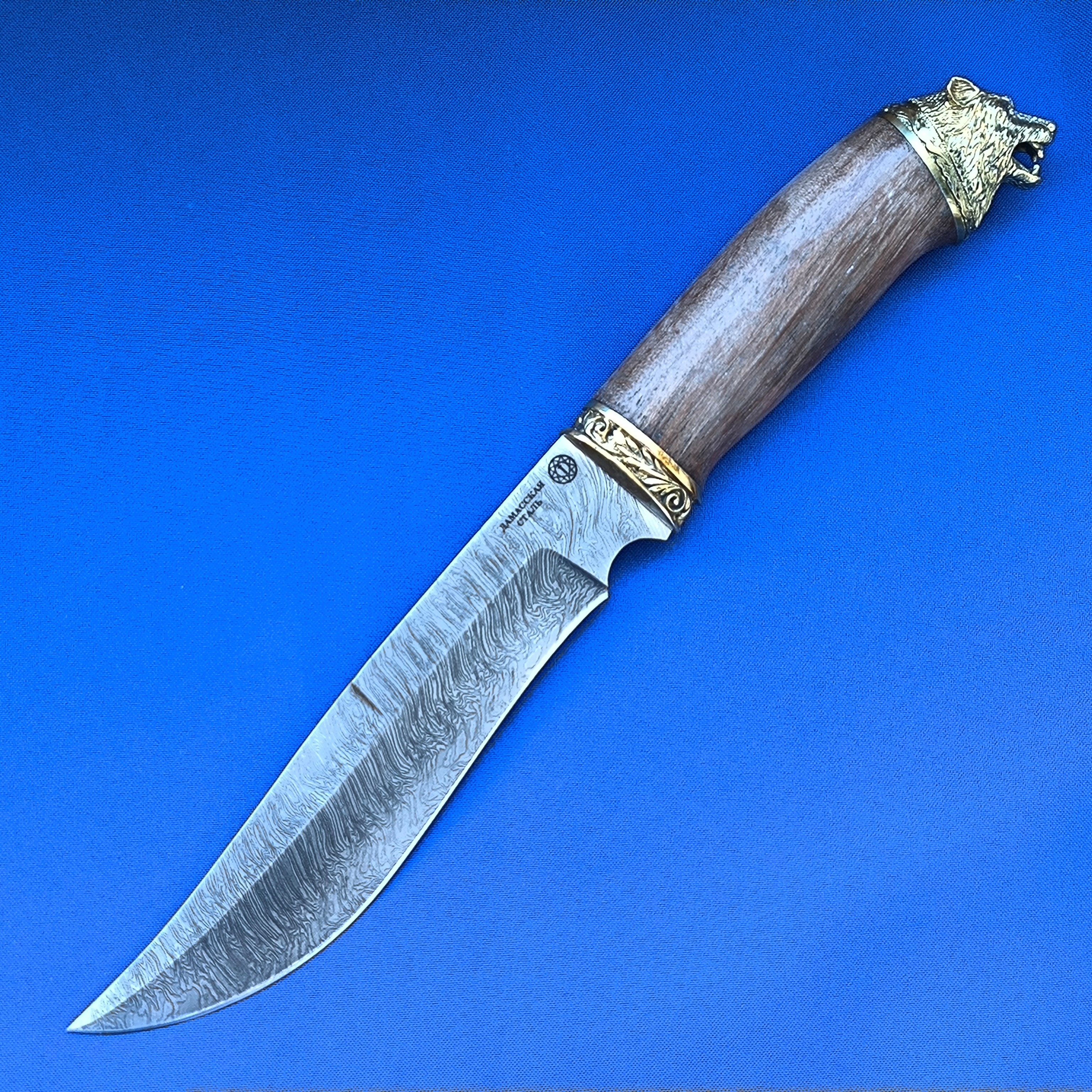 Нож Князь из дамасской стали – это сочетание традиций русского ножеделия и современных технологий, изготовлен ножевыми мастера города Ворсма. Яркая деталь модели – рукоять из дерева венге и украшенная навершием из качественного латунного литья в виде дикого зверя, придающая ножу неповторимый стиль и удобство хвата. Острота лезвия позволит справиться даже с самой сложной задачей! Такой нож станет отличным подарком настоящему ценителю качественных вещей.
