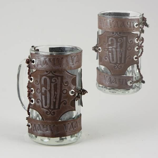 Подарочная кружка пивная "За удачу!" в кожаном оплете