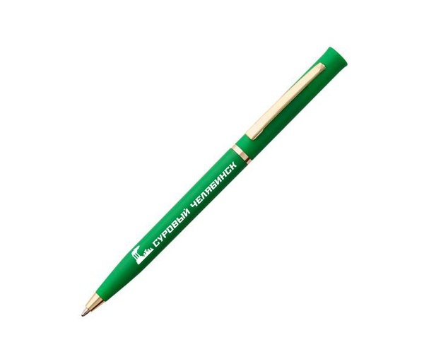 Лёгкую и изящную ручку из матового пластика с золотой фурнитурой №0003 "Суровый Челябинск" приятно держать в руке! Цвет пасты синий, поворотный механизм. Практичный сувенир из Челябинска по приятной цене! 👍