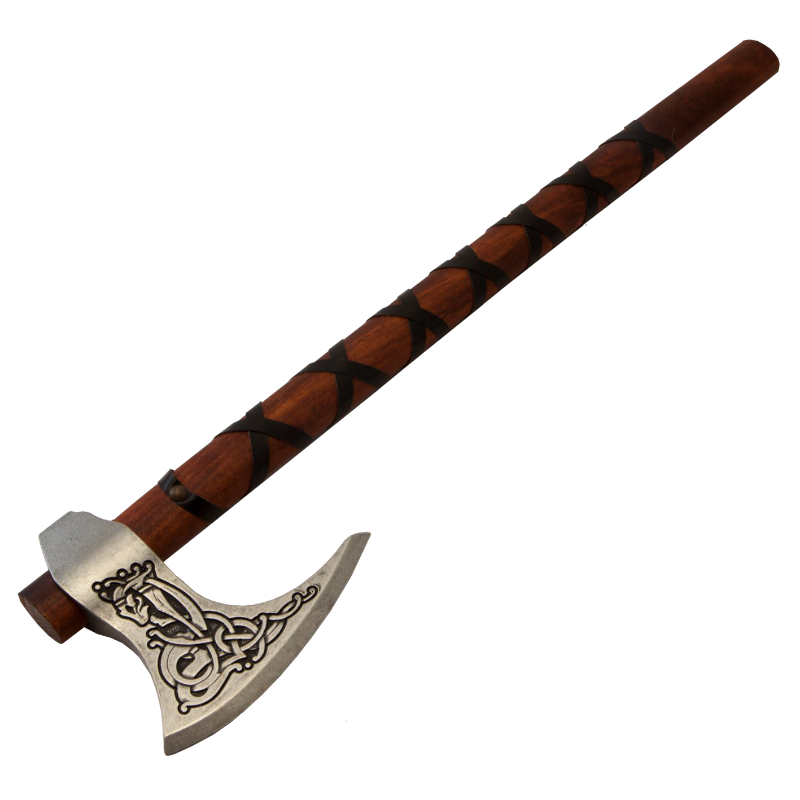 Погрузитесь в эпоху легендарных воинов с полноразмерной копией топора викингов Рагнар. Это стильный аксессуар, выполненный из высококачественного хрома, воспроизводящий дизайн оригинальных боевых орудий IX века Дании. Эргономичная рукоять в традиционной оплетке обеспечивает надежный хват, а изящные детали подчеркивают аутентичность.