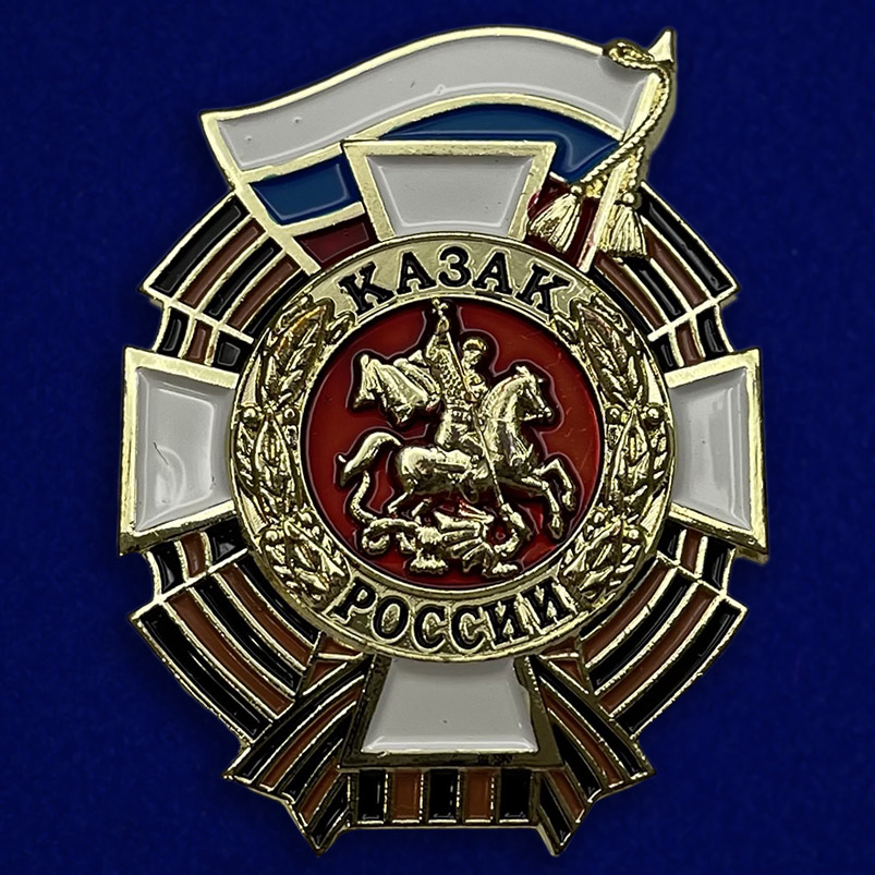 Но есть у российских казаков и общее – их государственная принадлежность, Отчизна, которой они служат на протяжении нескольких веков. Именно это служение Отечеству и отражено в представленном здесь нагрудном знаке «Казак России».